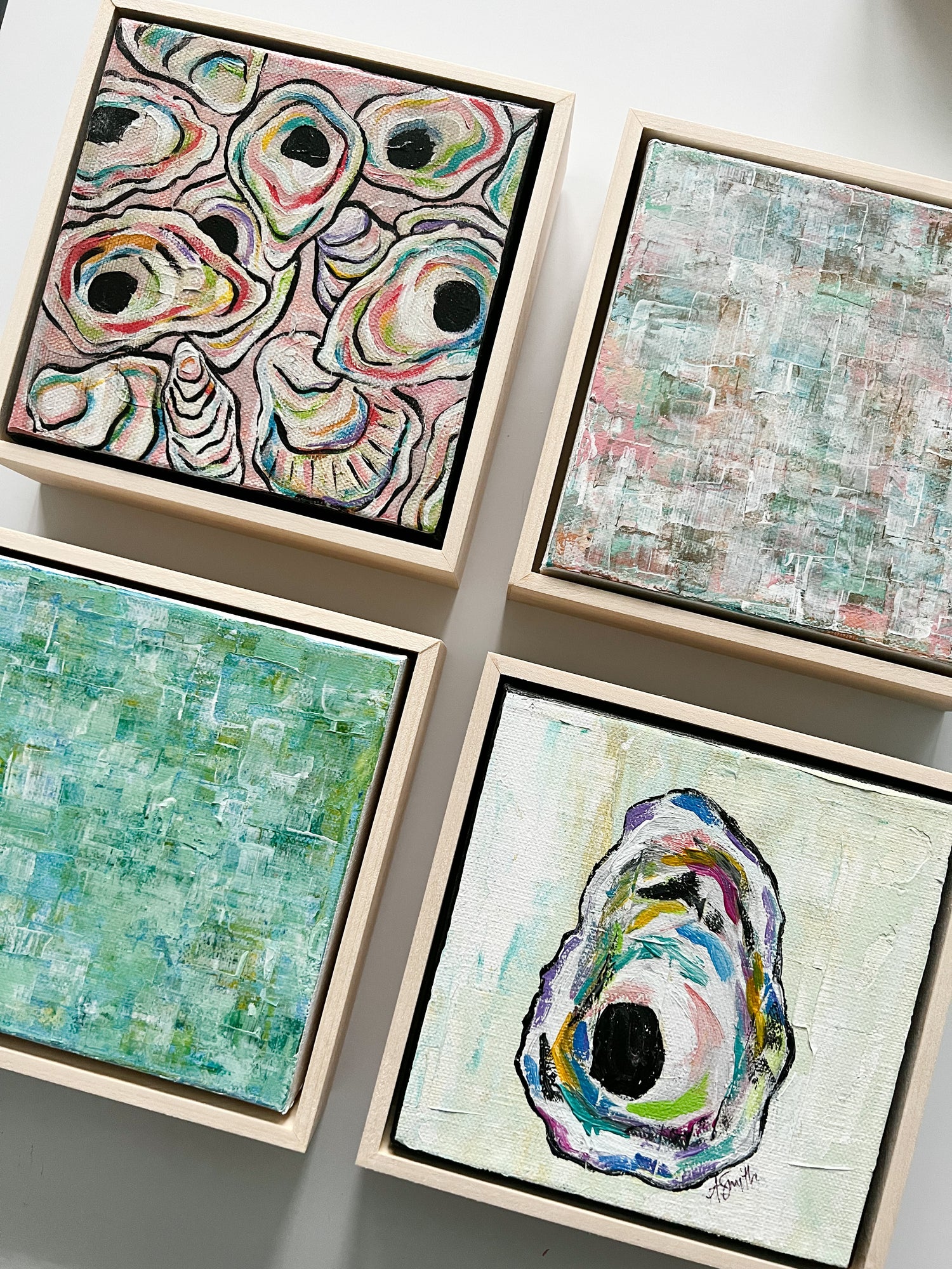 Andrea's coastal and abstract painting work in acrylics and mixed media pulls...
