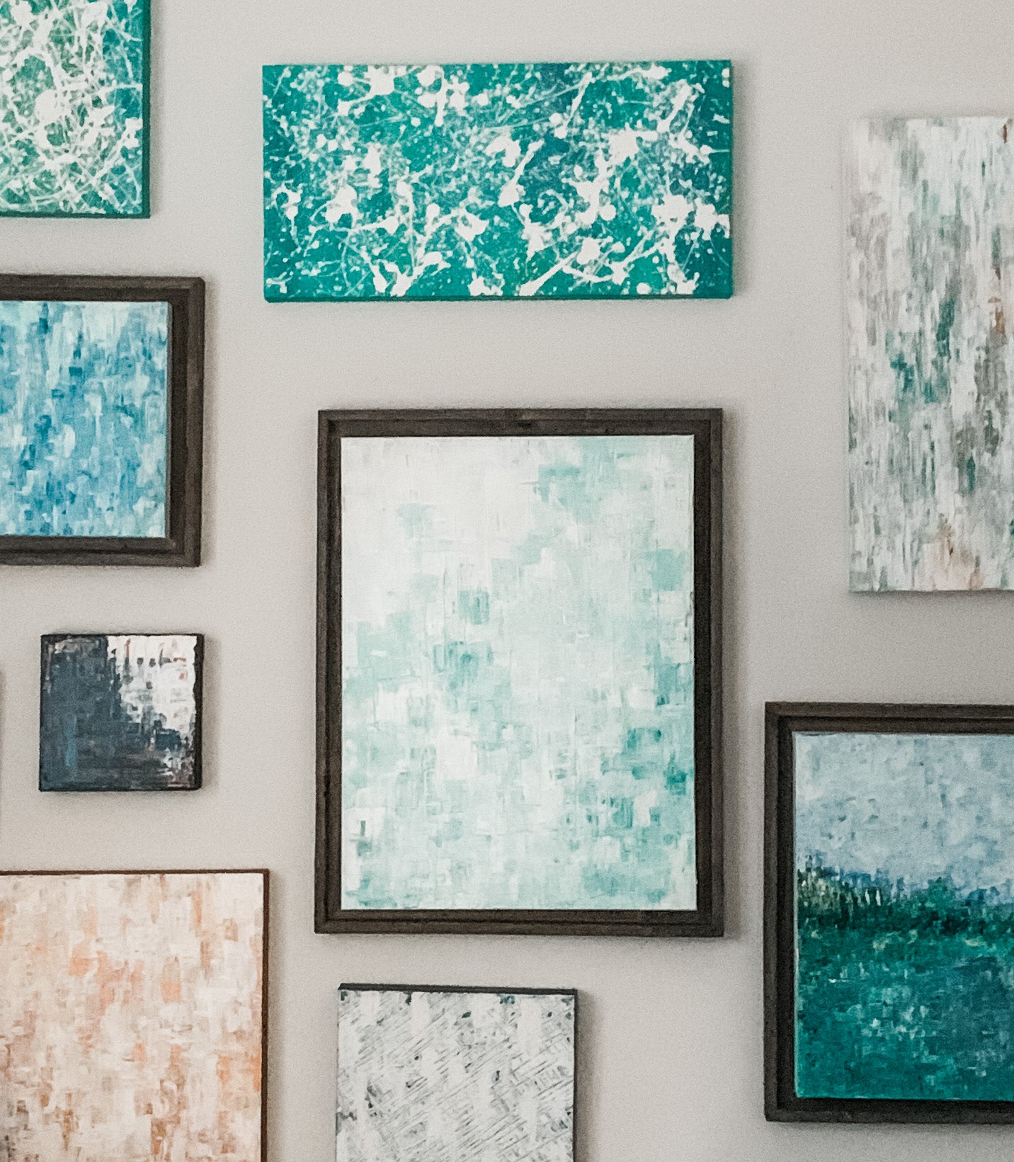 Andrea's coastal and abstract painting work in acrylics and mixed media pulls...