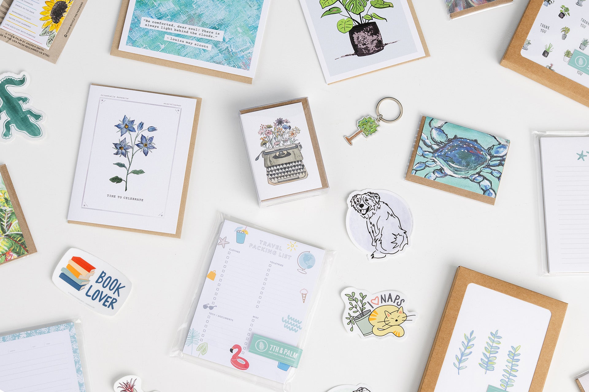 Eco-friendly greeting cards, stationery, stickers, magnets, keychains, notepads