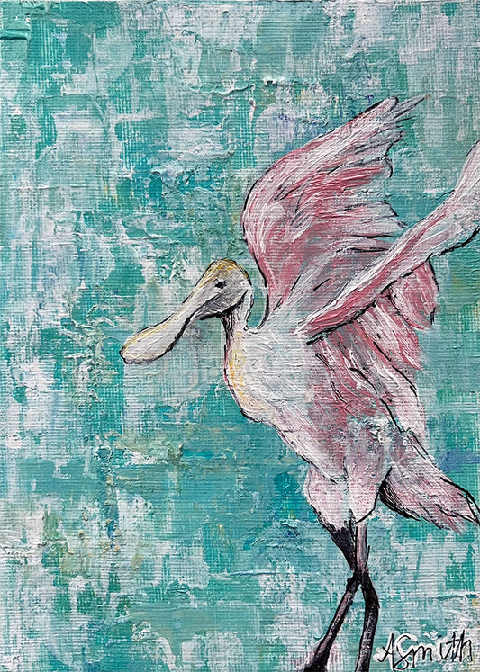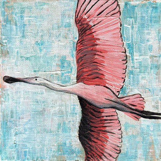 Roseate Spoonbill Acrylic Painting, 6x6"