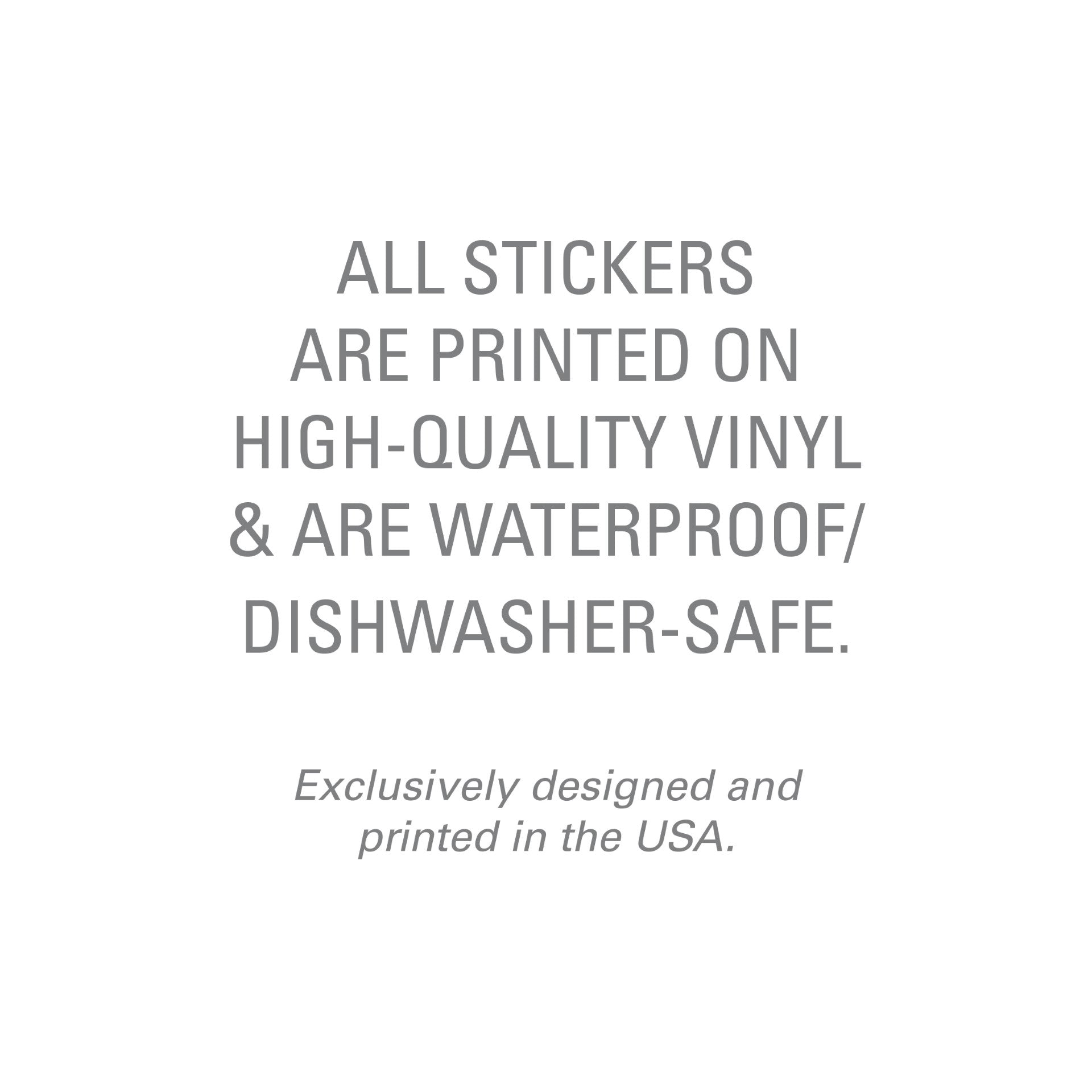 - Sturdy, water-resistant vinyl stickers with a long-lasting matte finish
